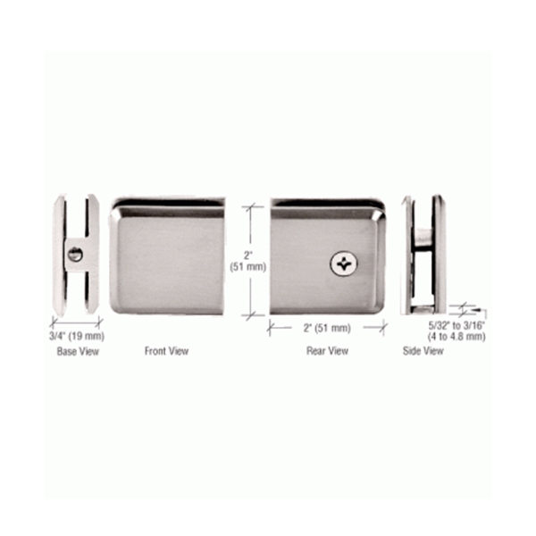 BB Hardware “Beveled Wall Mount BU4 Series” Clamps (Hole-in-Glass Style) mount directly to the wall, ceiling or floor to secure vertical fixed glass panels. Clearance between the glass and the wall is 3/16″ (5 mm). Clear silicone can be used to provide a clean, water resistant seal.