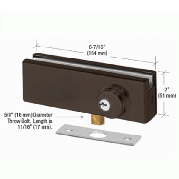 Patch Lock (American Series) Wide Design w/o Cylinder fits 1/2″ Glass – Anodized Aluminum with ARM205-001 Aluminum